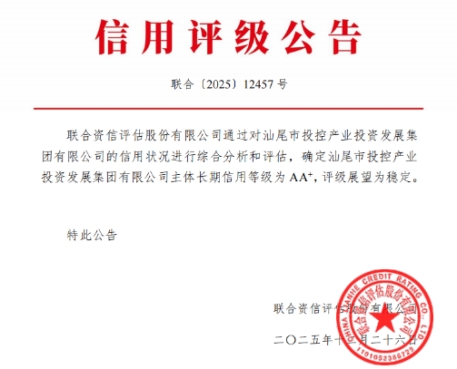 再創(chuàng)佳績!汕尾投控下屬產(chǎn)發(fā)集團喜獲“AA+”主體信用評級